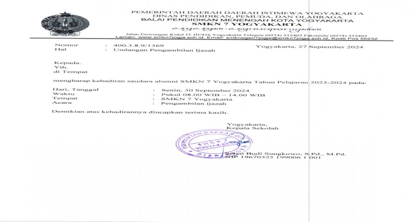 Pengumuman Pengambilan Ijazah Lulusan Tahun 2024